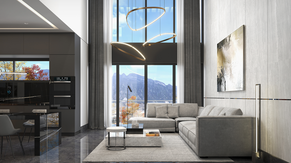 Accesamos acompañados de un jardin acristalado, para despues encontrarnos con el area social y gran doble altura, en el segundo nivel tenemos el área privada y por ultimo un cuarto de tv/ juegos en el sotano, el cual tambien cuenta con jardin y una pequeña alberca.